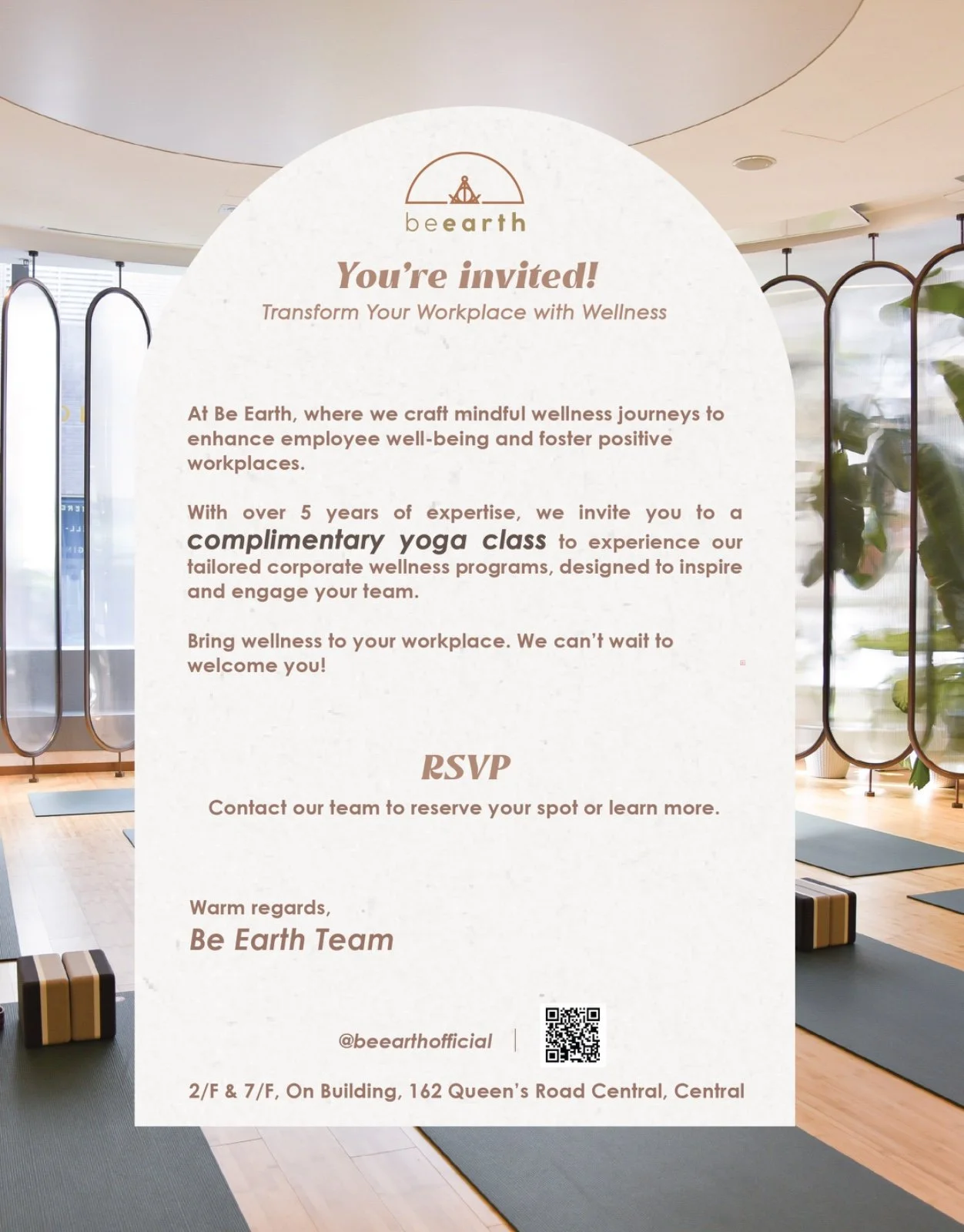 Be Earth Yoga is a serene urban sanctuary nestled in Hong Kong's vibrant Central district that embodies sustainable wellness. Its branding philosophy is rooted in creating an urban oasis that creates a pause in the heart of Hong Kong.